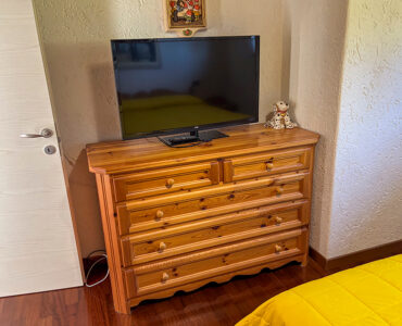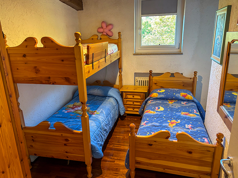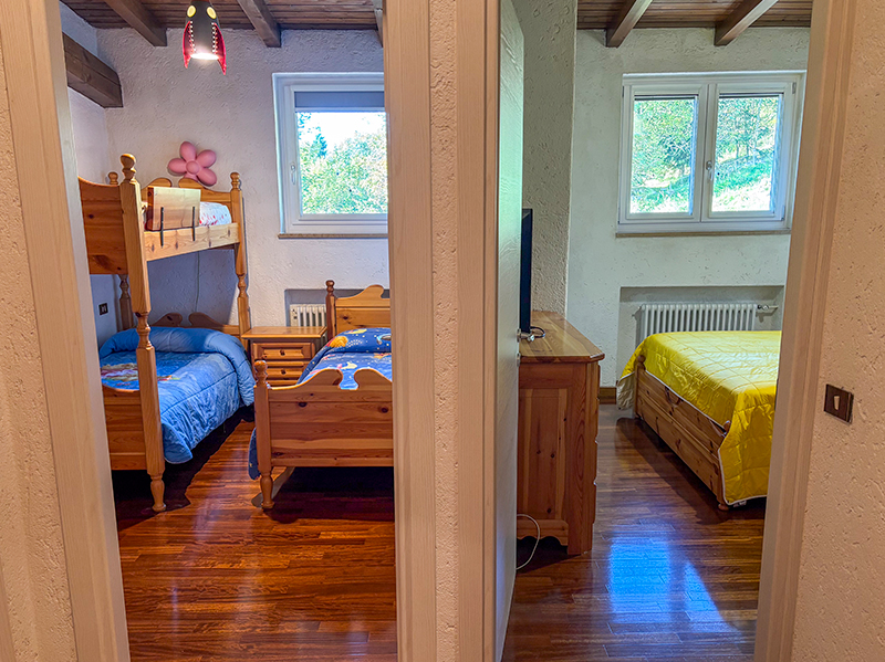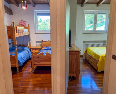 Nella zona notte, disimpegno con comodo armadio, due camere matrimoniali e una terza camera che può ospitare fino a tre persone con un letto a castello e un letto singolo. Le camere, come il bagno con box doccia, sono luminose e finestrate.